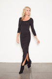 With the calf slit an uber soft jersey blend you won't be able to get enough. Sexy ruching details add comfort and curves,