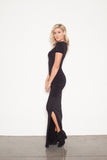 This is the black maxi you have been waiting for. With the calf slit an uber soft jersey blend you won't be able to get enough. Sexy ruching details add comfort and curves.