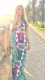 The MALIBU BALI Print stunning halter maxi. Plunging neck line. Bring out your hotness!