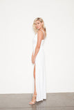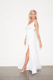 The White Goddess Maxi is one dress you can't go without. Flowing maxi with front slit & daring neckline. Sexy empire waist with delicate silver beaded belt. You are a goddess worthy stunner.