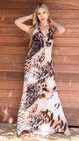 The MALIBU BALI Print stunning halter maxi. Plunging neck line. Bring out your hotness!