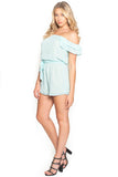 Feel sexy & flirty in this textured chiffon romper. Beautiful aqua chevron print. With a strapless top, ruffle sleeve, tie and pockets it has the perfect flow.  Romper is lined.